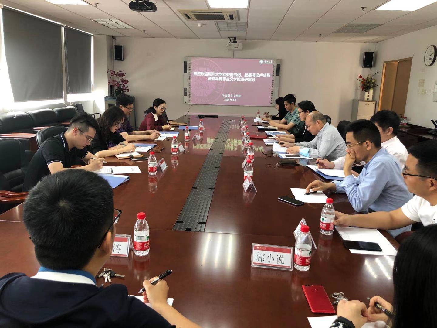 面临重大的机遇期,要主动作为、积极作为,推动学院更高质量更高水平的发展;二是要发挥好比较优势,把握好深圳特区和先行示范区的区位优势,力争马克思主义理论一级博士点申报工作取得成功;三是加强思政课教学,守好意识形态阵地,把建党100周年的主题融入教学和科研工作;四是继续做好党的建设和党风廉政建设,更加重视师德师风和党规党纪;五是学院要坚持问题导向,梳理学院发展中面临的问题和困难,并形成书面报告上报学校,以推动问题的解决。