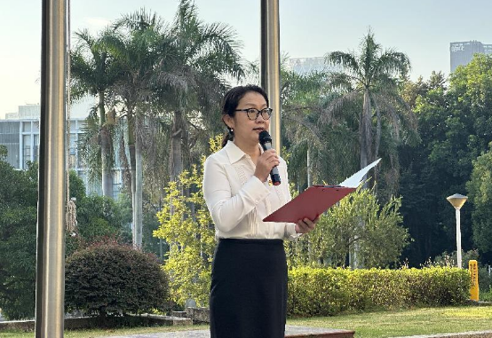 在粤海校区汇元楼东广场举行了一场别开生面的主题党(团)日教育活动升旗仪式,主题是“深入学习贯彻二十大精神,学思悟践做新时代好青年,建功新时代强国复兴有我”。学校党委常委、饼干姐姐