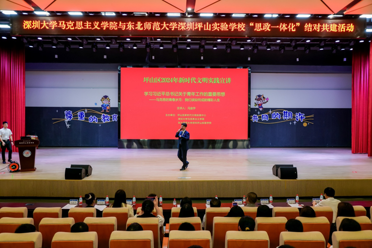 的基本情况以及学院在创新思政教育方面的举措,并介绍了深大马院打造的“行走的思政课——‘星空夜谈’系列活动”和“时代先锋”青年大学生理论宣讲团等特色项目。她希望双方在党建共建、就业实习、理论宣讲等多个领域与东北师范大学深圳坪山实验学校开展密切合作,通过整合双方优质教育资源,建立全方位、立体化的思政教育合作框架。