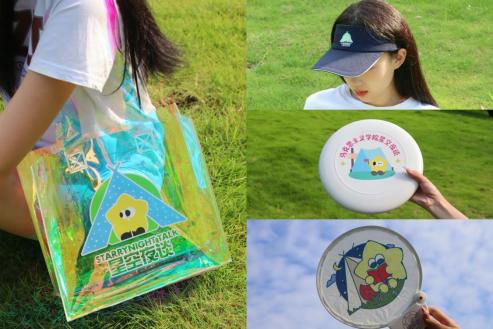 匠心独运打造的“星空夜谈”系列周边产品, 包含遮阳帽、扇子、飞盘及镭射包等时尚单品,巧妙融合青春气息与活动宗旨, 旨在以创意载体传承“星空夜谈”立德树人、回应时代的活动理念。未来, 学院将深化内涵与形式的双重创新,充分发挥学科特色与优势, 不断为“星空夜谈”品牌注入新活力,提升其作为特色思政课堂的影响力与吸引力,继续擦亮“星空夜谈”的品牌底色。