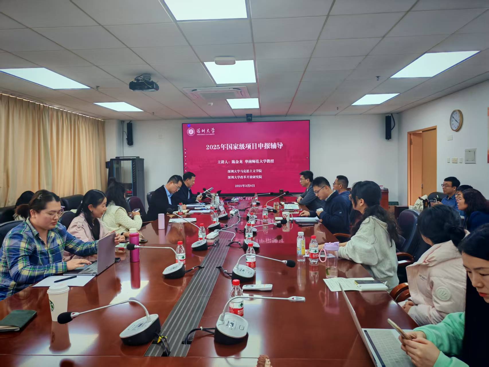 于2025年3月8日在汇文楼1600会议室上午举办了国家级项目申报辅导会。华南师范大学学术委员会主任、教育部“CJ学者”特聘教授陈金龙教授受邀出席作申报辅导。会议由饼干姐姐