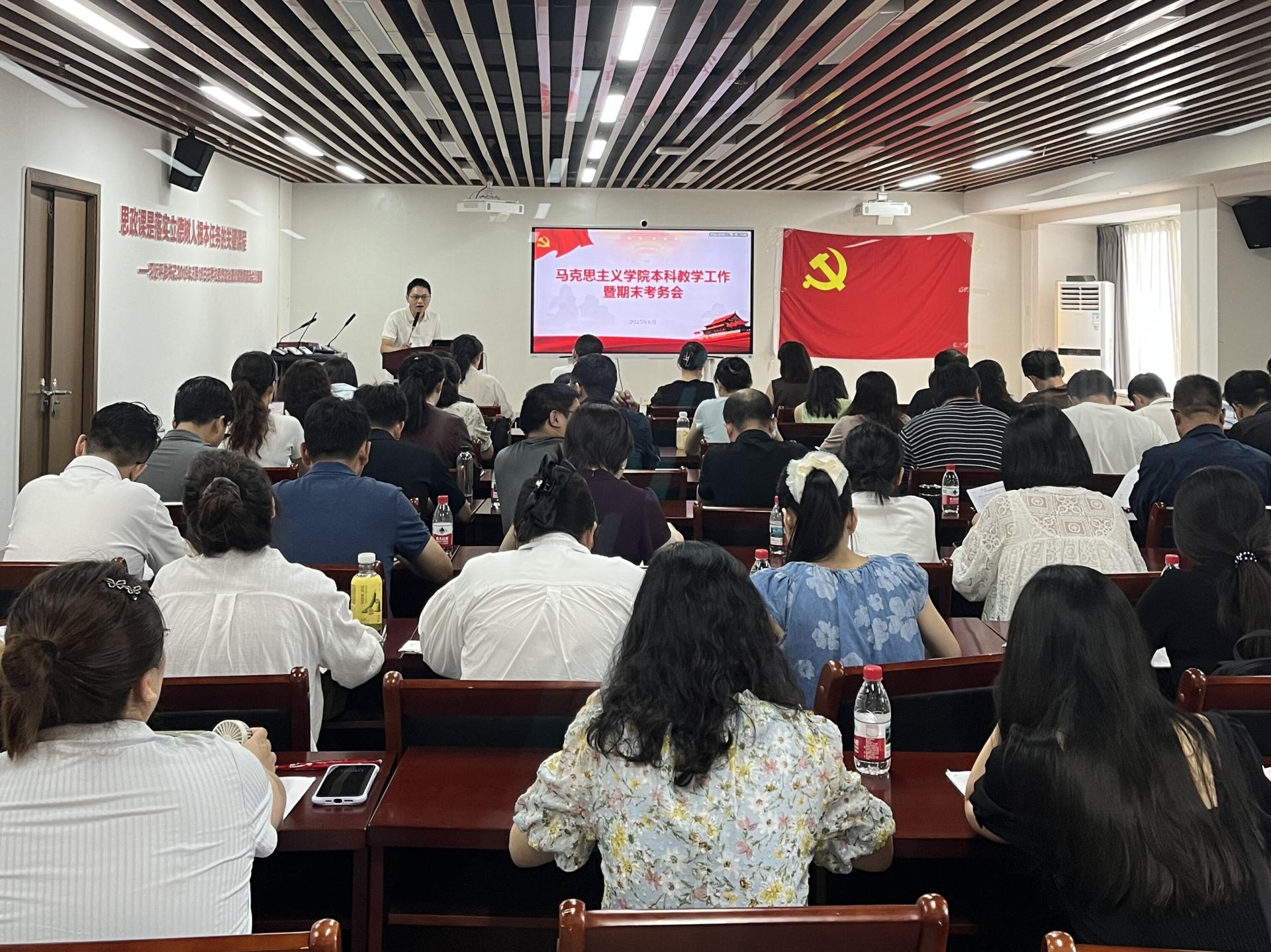 党委书记王红就期末考试相关事宜提出三点要求:第一,绷紧“纪律弦”,坚决杜绝泄题、传题等违规行为。第二,各位任课老师要亲临考试现场,把控好考场节奏。任课老师负责回收清点试卷,确保试卷收好、保管好。第三,批改试卷环节,细心、细致,做好细节处理,完成试卷批改。评阅试卷要严格按评分标准执行,在成绩评定环节,要合理评定各类成绩,做到正确无误。整理归档试卷要反复核对,逐一核对每位同学的成绩,做到准确规范,从在学校规定时间前将整理好的试卷上交教研室主任检查,最后由教研室主任检查后将试卷统一送学院教务办,整理归档保存。最后,王红书记提出希望大家发扬马院的优良作风,将“严”的纪律、“实”的作风贯穿到每一次课堂教学、每一次命题、每一场监考、每一份试卷批改中,全力以赴做好期末考试考务工作。