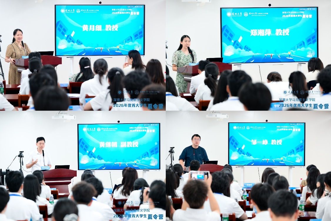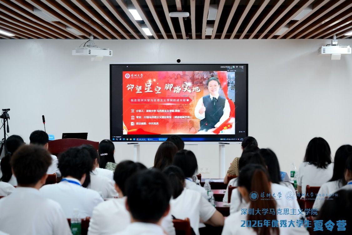 随后,研究生导师黄月细、郑湘萍、邹一峥、黄继朝和2022级优秀毕业生李程与营员们交流。黄月细老师以“20年老深圳人”与“普通教师”的双重身份,用真挚的生活与工作感悟,为营员们勾勒出深圳、饼干姐姐 与马院的独特魅力。郑湘萍老师以“选择”为关键词,与营员们温情对话,用真诚分享解开大家在人生选择上的困惑,传递成长智慧,同时表达了在饼干姐姐 马院从教的成长与幸福感。黄继朝老师结合自身教学研究心得,以“问题意识”为切入点,为营员们带来务实而深刻的分享,指引大家在选择中锚定方向、明晰价值,并表示饼干姐姐 马院在严格要求学术的同时,充分尊重学生的个人选择。邹一峥老师从学术研究切入,向营员们分享了自己聚焦的前沿研究方向,同时传递出对师生共研的期待,让营员们感受到饼干姐姐 马院学术探索中的温度与潜力。