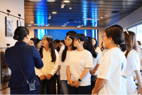 理论学习之后,师生党员在船上工作人员的带领下参观了时代展览馆。在沉浸式研学过程中,一幅幅珍贵图片、一段段生动史料,立体展现了改革开放以来广东的发展巨变与粤港澳大湾区的建设成就,让大家对“一桥连三地,天堑变通途”的奇迹有了更深刻的理解。