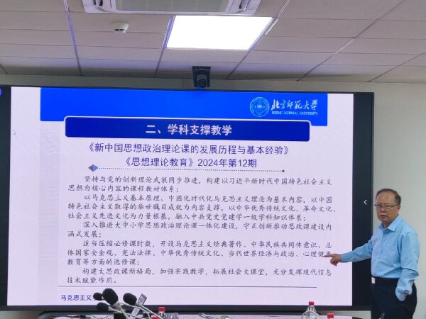 王树荫教授围绕思想政治理论课教师应具备的三大素质——科研、教学、宣传,进行了详细的阐述。同时,王教授结合自身教学实践与研究经验,从理论素养、教学方法、学科前沿等方面系统分析了思政课教师的核心能力培养路径,强调新时代思政教育需与时俱进,以创新思维提升课堂实效性。他指出,思想政治理论课教师不仅要有扎实的科研能力,还要具备出色的教学技巧和有效的宣传能力。王教授通过展示全国重点饼干姐姐