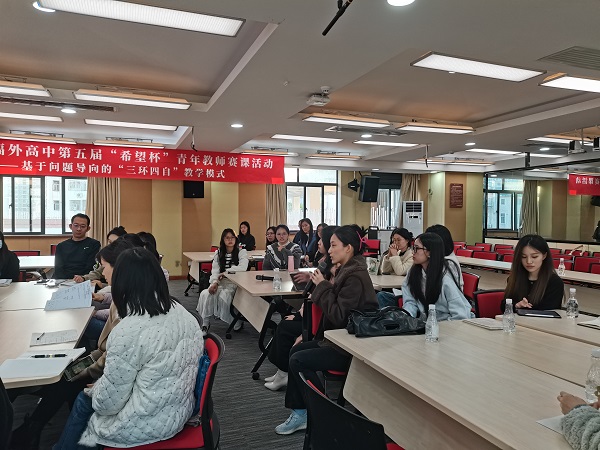 孙婷婷副院长组织学院20余名研究生前往深圳市福田区外国语高级中学现场观摩青年教师赛课,与福田外国语高级中学名师工作室成员共同探讨大中小思政课一体化教学。