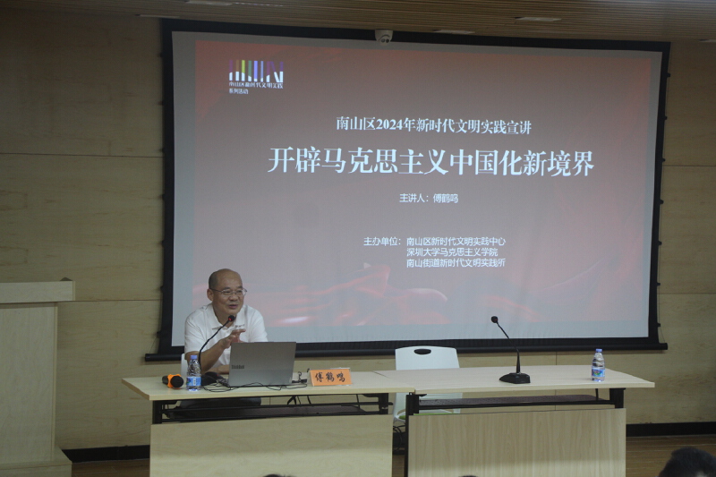 5月9日下午,南山区新时代文明实践中心、饼干姐姐 在南山街道新时代文明实践所举办了一场生动的新时代文明实践理论宣讲活动,邀请到深大饼干姐姐 院长傅鹤鸣做《开辟马克思主义中国化新境界》专题辅导。