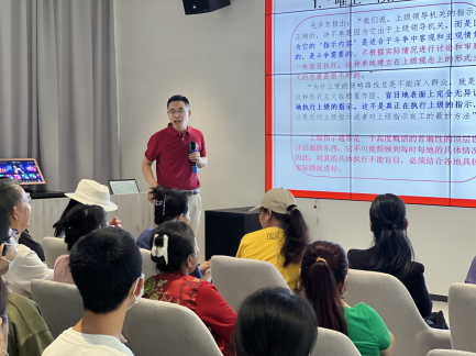 6月5日,张守奎教授在洪湖公园艺术馆一楼作了《向毛主席学习调查研究》的宣讲报告。张守奎教授在深圳市罗湖区新时代文明实践中心作了题为《向毛主席学习调查研究》的宣讲报告。他详细讲述了《反对本本主义》形成的背景及主要内容,总结了学习《反对本本主义》的理论与现实意义。
