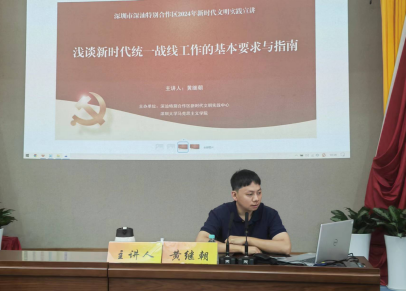 5月30日,黄继朝副教授在深圳市深汕特别合作区新时代文明实践中心作了题为《浅谈新时代统一战线工作的基本要求与指南》的宣讲报告。他首先从四个方面详细论述了新时代统一战线工作的基本要求,然后分别从重要法宝、本质要求、方针原则、规律方式、核心问题等五个方面重点阐述了新时代统一战线工作的基本指南。