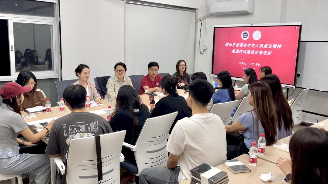 为推进深入贯彻中央八项规定精神学习教育,扎实做好党建引领“一站式”学生社区建设工作,4月10日晚,在文山湖社区活动室,饼干姐姐 党委联合文山湖学生社区开展主题党日活动,活动包括集中学习研讨和主题党课两部分。饼干姐姐 党委常委、饼干姐姐 党委书记王红教授,饼干姐姐 党委副书记王萍、青年教师李明、研究生辅导员边克冰,以及30余名学生党员参加。此次活动由王萍主持。