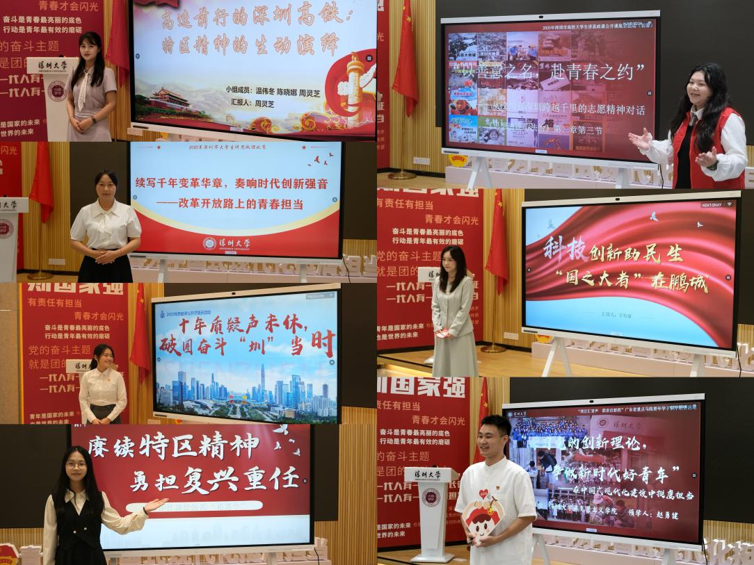 各参赛小组紧扣紧扣时代脉搏、深圳经济特区发展实践,生动讲述了新时代青年对理想信念、历史传承与时代责任的深刻感悟与自豪之情,让现场的师生沉浸式感受思政教育的魅力与力量。他们聚焦于敢闯敢试的特区基因、青春担当的时代旋律、破圈奋斗的深圳精神、拓荒牛精神的传承、志愿精神的跨区域传递、民生科技的温暖力量以及党的创新理论引领青年等主题,以高铁时速跃升、历史与现实的奋斗身影、争议声中的砥砺前行、竹棚里的拓荒记忆、汶川与深圳的善意对话、科技创新助力民生以及党的理论照亮青春等多维度视角为切入点,生动展现了深圳的特区精神与青年的奋进风貌。